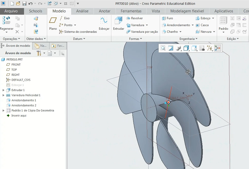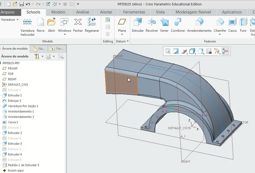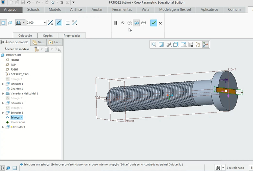 | Recomendações | Utilizar o Creo Parametric 4.0 em Português, pois no curso foi usada essa versão |