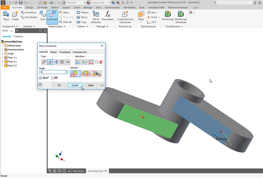 Neste módulo teremos uma visão geral do curso, entendendo sua organização para facilitar o aprendizado. Aprenderemos a inserir componentes na montagem, adicionar as restrições, inserir componentes a partir da biblioteca do Inventor, trabalhar com arquivos importados de outros softwares, espelhar, mover e rotacionar os componentes.