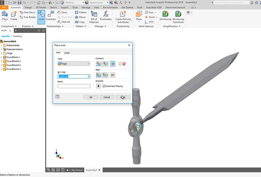 Neste curso aprenderemos a trabalhar com montagens no Inventor, iniciando com uma visão geral dos tópicos para facilitar o aprendizado. Na sequência, aprenderemos a inserir componentes na montagem, adicionar as restrições, inserir componentes a partir da biblioteca do Inventor, trabalhar com arquivos importados de outros softwares, espelhar, mover e rotacionar os componentes. Treinaremos o desenvolvimento de montagens, aperfeiçoando-se no uso do Inventor, através da realização de dois exemplos práticos, montando o conjunto de uma espada e o conjunto de um ponto de ancoragem. Também deixaremos tarefas para o aluno fazer, propondo a montagem de uma chave roquete e de uma chave de grifo.