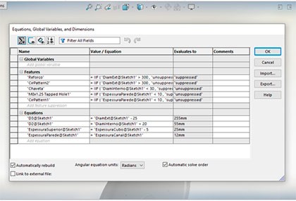 Neste módulo será apresentado os conceitos de parametrização de peças e montagens, com a utilização de recursos de fácil utilização e aplicando técnicas práticas de modelamento.