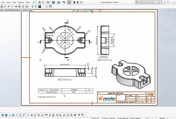 Neste módulo veremos passo a passo como gerar a folha 2D do projeto modelado no SolidWorks, utilizando o ambiente específico para isso, o Drawing. Definiremos o Template; faremos a inserção das vistas padrões e personalizadas; criaremos vistas de detalhes e seções; adicionaremos marcas de centro, dimensões, tolerâncias, anotações, tabela de materiais e balões de identificação.